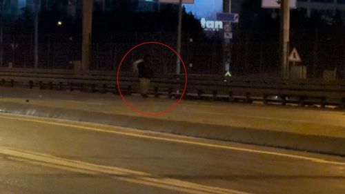 Beylikdüzü'nden E-5 ana yoluna çıkan bir şahıs, gece saatlerinde Avcılar'a kadar kilometrelerce yürüdü; o anlar cep telefonuyla kaydedildi.