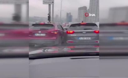 Beylikdüzü, E-5 Karayolu Haramidere mevkiinde trafikte yaşanan 'kaynak' tartışması maddi hasarlı bir kazaya yol açtı. Kazanın ardından araçlardan inen iki genç, kendilerine çarpan sürücüye saldırdı; olay anı kameraya yansıdı.