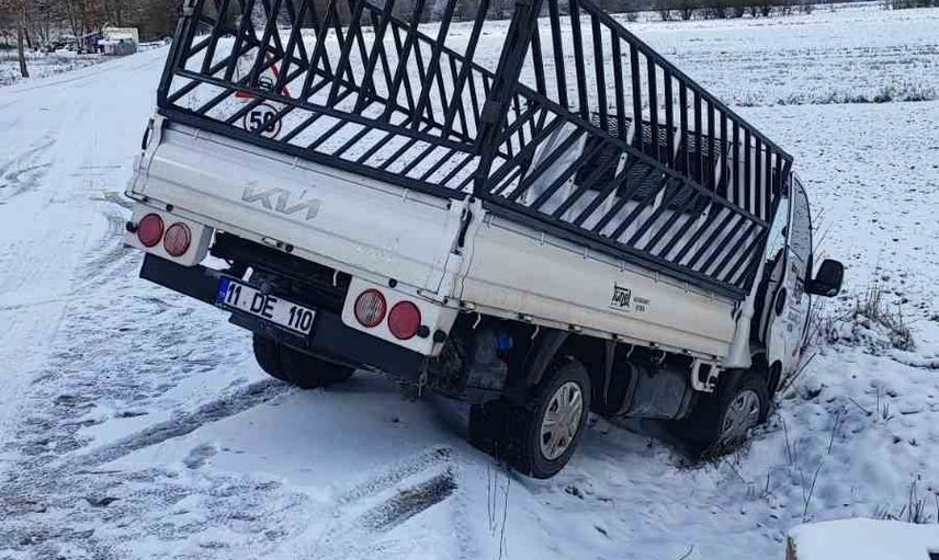 Bilecik’in Pazaryeri ilçesi Büyükelmalı köyü yolunda, zemin buzlanması nedeniyle kontrolden çıkan bir araç tarlaya uçtu. Olay, karayolunda seyir halindeki 11 DE 110 plakalı kamyonetin sürücüsü İbrahim A. yönetimindeki araçta meydana geldi.