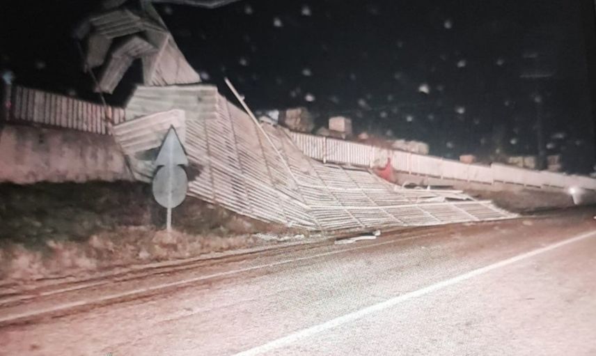 Çatı yola düştü, can kaybı yok