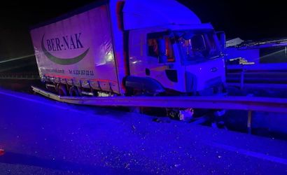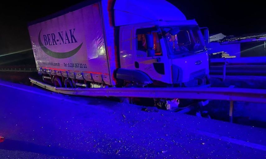 Kontrolden çıkan kamyon, orta refüjde bulunan bariyerlere çarparak durabildi. Meydana gelen trafik kazasında araç sürücüsü Hakan K. yaralandı.