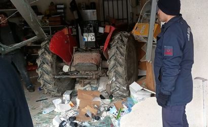 Bilecik'in Bayırköy Beldesinde seyir halindeki bir traktör kontrolden çıkarak temizlik malzemeleri satan bir iş yerine daldı.