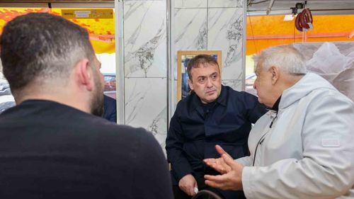 Bilecik Valisi Faik Oktay Sözer, esnaf ziyareti sırasında 1977'de Cuma Namazı'nda 'ters selam' vererek sevdiği kızı aldığı anlatılan Şerafettin Yılmaztürk'ün hikâyesini gülerek dinledi.