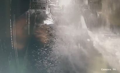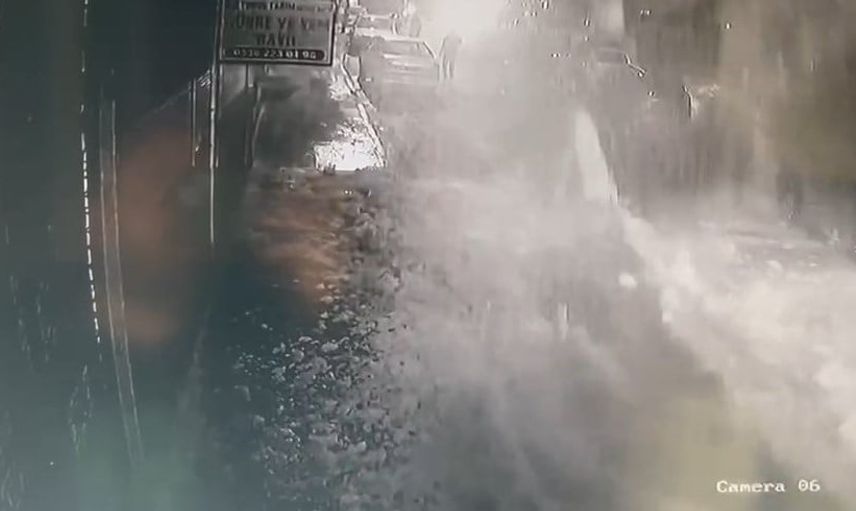 Bir şahsın saniyelerle kurtulduğu ve 1 aracın zarar gördüğü anlar, iş yerlerinin güvenlik kameraları tarafından saniye saniye kaydedildi.