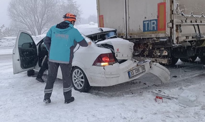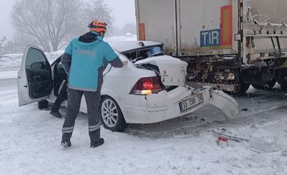 Bingöl'ün Bilaloğlu köyü mevkiinde meydana gelen kazada, kar ve buzlanma nedeniyle kontrolden çıkan bir otomobil tıra arkadan çarptı.