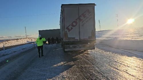 Bitlis'in Adilcevaz ilçesinde buzlanan yolda yabancı plakalı tır kaydı; yol kapandı, can kaybı yok. Ekipler müdahale edip trafik kontrollü sağlandı.