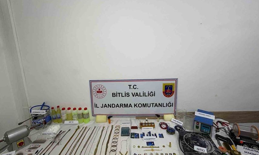 Bitlis Valiliğinden yapılan açıklamaya göre operasyonda ele geçirilenler arasında: 15 adet sahte 22 ayar bilezik, 593 gram altın zincir, 1.190 gram olan metal renkli arloy maddesi (Altın üretiminde kullanılan), 10 adet sahte 1’er gramlık 22 ayar kapalı paket içerisinde altın, 1 adet ortasında çeyrek altın bulunan bileklik, 3 adet sahte olduğu değerlendirilen altın ziynet eşyası ile altın üretimi, işlenmesi ve ayar tespiti amacıyla kullanılan elektronik aletler, teknik ekipmanlar ve çeşitli malzemeler yer aldı.