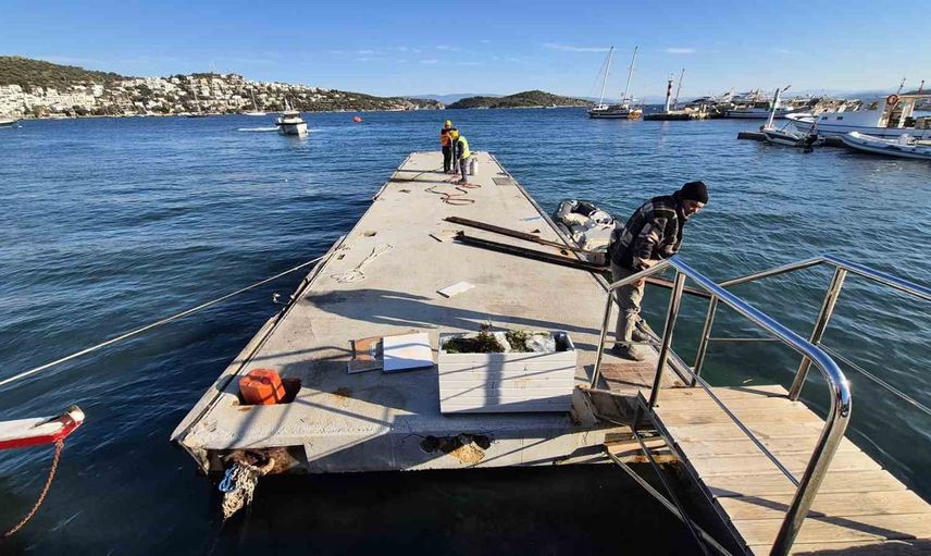 Türkbükü'ndeki yasa dışı iskele ve yüzer platformlar sökülüyor