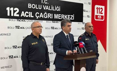 BOLU VALİSİ ABDULAZİZ AYDIN, YENİ YIL TEDBİRLERİ KAPSAMINDA 112 ACİL ÇAĞRI MERKEZİ’Nİ ZİYARET ETTİ. KENTTE YILBAŞININ HUZUR VE GÜVEN ORTAMINDA GEÇMESİ İÇİN TÜM TEDBİRLERİN ALINDIĞINI BELİRTEN VALİ AYDIN, "EMNİYET VE JANDARMA BİRİMLERİMİZDEN TOPLAM 2 BİN 778 PERSONEL, 706 EKİP, 660 ARAÇ VE 12 DRONE İLE SAHADA OLACAĞIZ" DEDİ.