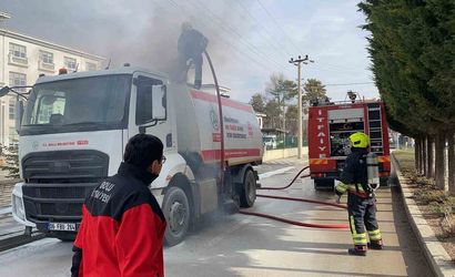 Bolu'da Yol Süpürme Aracında Yangın Söndürüldü