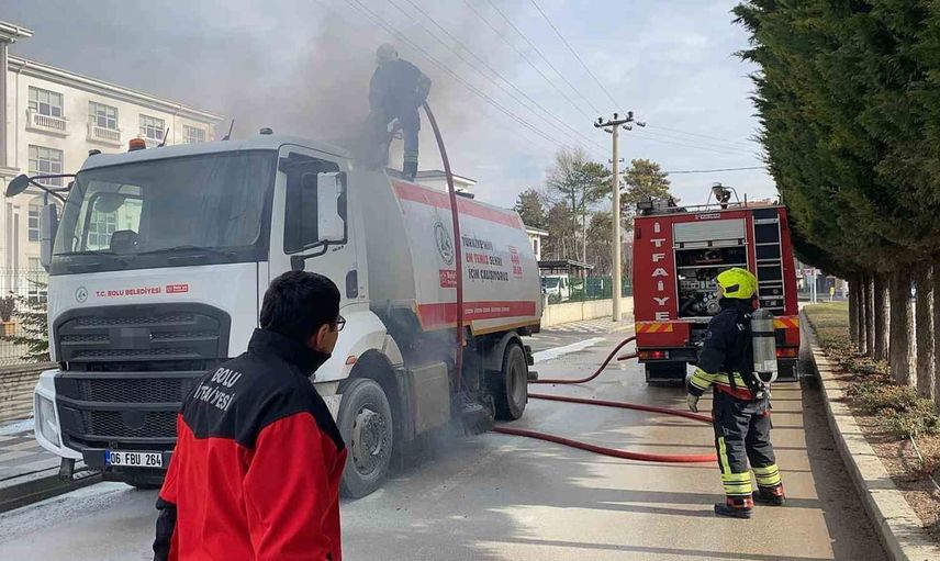 Olay, Tabaklar Mahallesi Necip Fazıl Kısakürek Bulvarı üzerinde öğle saatlerinde meydana geldi. Edinilen bilgiye göre, Bolu Belediyesine ait yol süpürme aracından henüz belirlenemeyen bir nedenle dumanlar yükselmeye başladı.