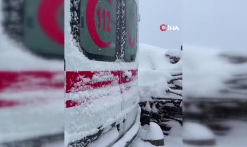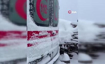 Gelen ihbar üzerine hastaya müdahale etmek için yola çıkan sağlık ekiplerini taşıyan ambulans, karla kaplı zeminde ilerlemekte güçlük çekti ve bir süre sonra kara saplandı.