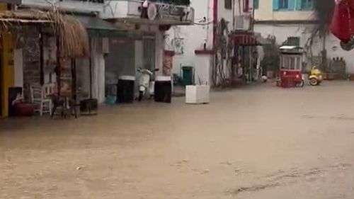Bozcaada'da öğle saatlerinde etkili olan sağanak yağış cadde ve sokakları suyla kaplayarak yaşamı olumsuz etkiledi; Meteoroloji uyarısı sonrası yağış etkili oldu.