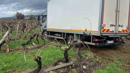 Buldan'da Kamyon Üzüm Bağına Girdi: Can Kaybı Yaşanmadı