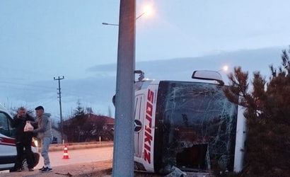 Edinilen bilgiye göre, sürücüsü T.A. (57) olan ve plakası 45 YK 653 olan Sarıkız Firması'na ait yolcu otobüsü, buzlanma nedeniyle devrildi.