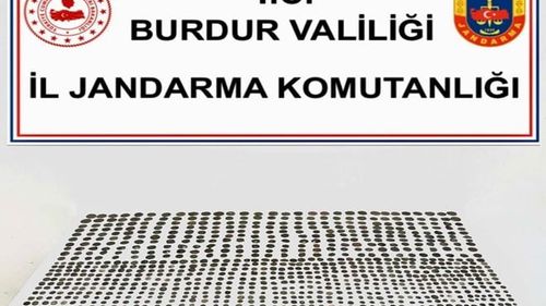 Burdur’da Bucak’ta jandarma operasyonunda 1.003 sikke ele geçirildi; M.B. ve M.K. isimli iki şahıs gözaltına alındı.