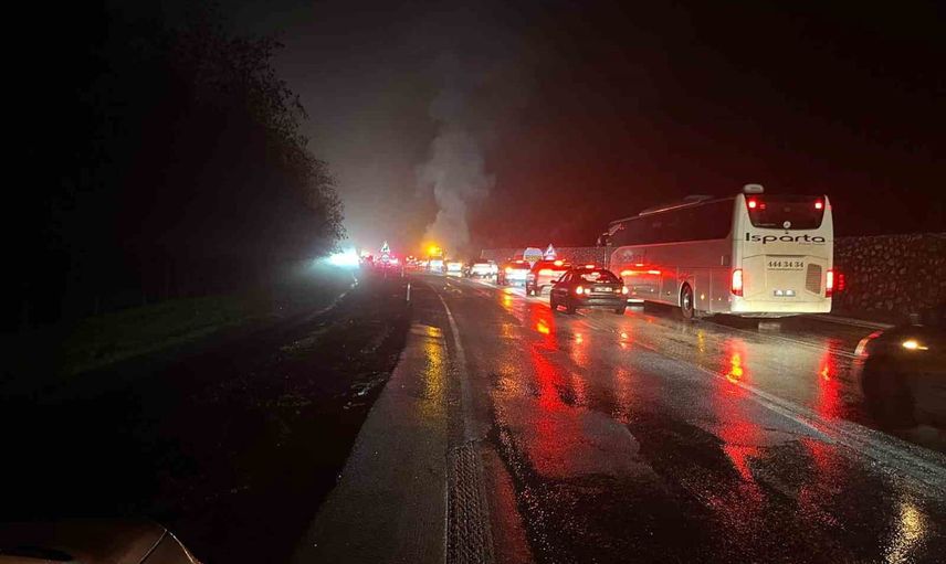 Plakası ve sürücüsü öğrenilemeyen BMW marka otomobil seyrettiği sırada birden alev aldı. Sürücü aracını yol kenarına çekerek, araçta bulunanlarla birlikte dışarı çıkmayı başardı. Yolcuların tamamı 5 kişi kendi imkanlarıyla araçtan ayrıldı.