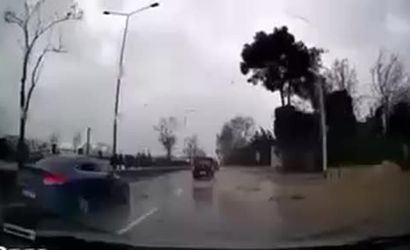 Mudanya yolunda seyreden sürücünün aracının arka kamerasına yansıyan görüntülerde, ana yolda kimsenin bulunmadığı bir sırada fırtınanın etkisiyle bir ağacın aniden yola devrildiği görülüyor. Sürücü, uçan parçalardan güçlükle korunabildi.
