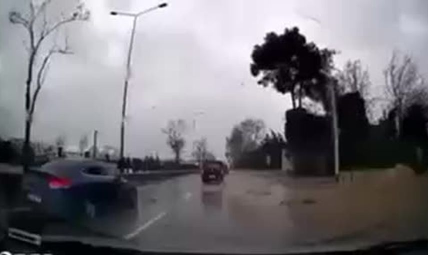 Bursa genelinde etkili olan fırtına, saatteki hızı 75 kilometreye ulaşarak ağaçları devirdi ve çatıları uçurdu. Mudanya yolunda gerçekleşen olay, yoldan geçen bir aracın kamerasına anbean yansıdı.