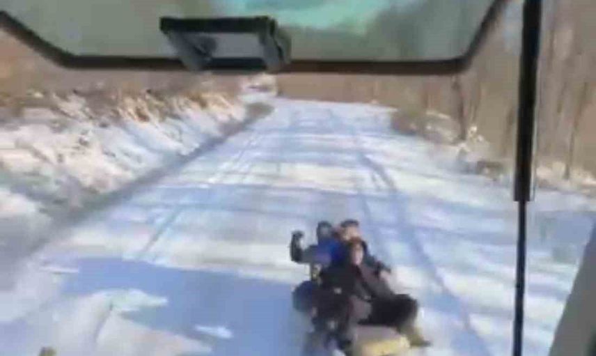 O anlar bölgede bulunanlar tarafından cep telefonu kamerasıyla kaydedilirken, çocukların neşesi ve eğlence dolu görüntüler dikkat çekti.