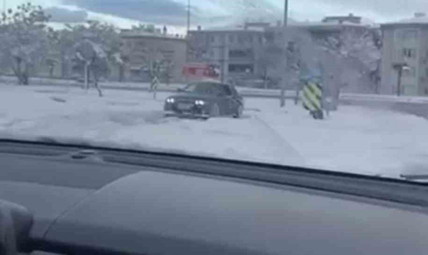 Tehlikeli anlar, çevredeki bir vatandaş tarafından cep telefonu kamerasıyla kaydedildi. Görüntülerde sürücünün kontrolü zorlayan manevrası ve kaygan zeminin oluşturduğu riskler net biçimde görülüyor.