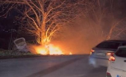 BURSA'DA KONTROLDEN ÇIKAN OTOMOBİL AĞACA ÇARPTIKTAN SONRA ALEV ALDI VATANDAŞLAR TÜPLER İLE MÜDAHALE ETTİ.