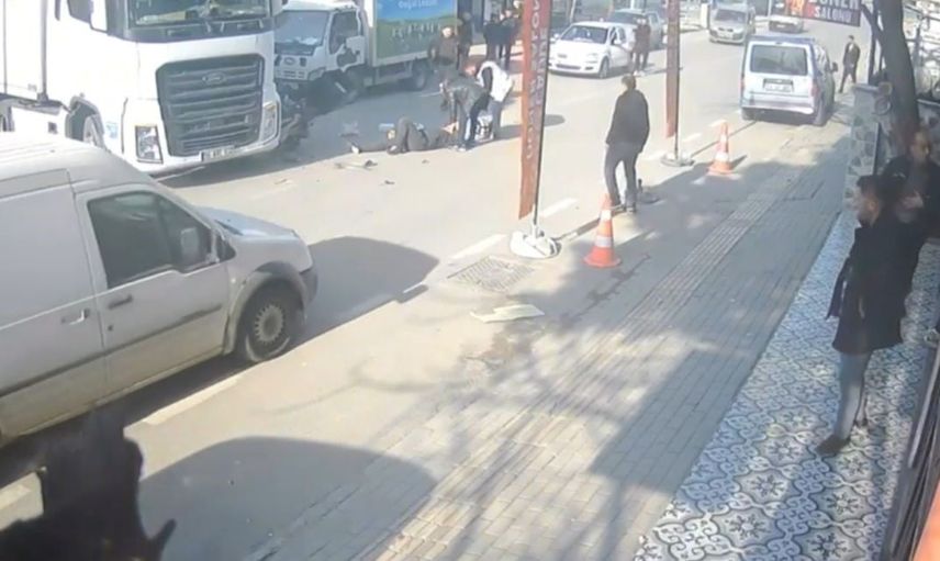 Çarpışmanın şiddetiyle sürücü motosikletten düşerek yaralandı. Kaza anları, çevredeki bir iş yerinin güvenlik kamerası tarafından kaydedildi.