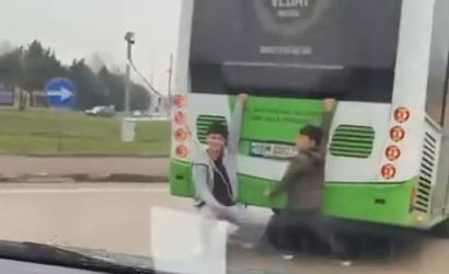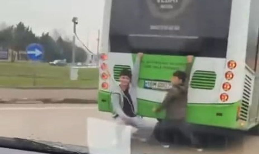 Akıllarında oyun oynadıklarını düşündükleri belirtilen çocuklar, otobüsün arka kısmına tutunarak uzun süre ilerledi. Sürücü ve trafikteki diğer vatandaşlar için tehlike oluşturan bu davranış, hem çocukların hem de çevredeki kişilerin güvenliğini riske soktu.