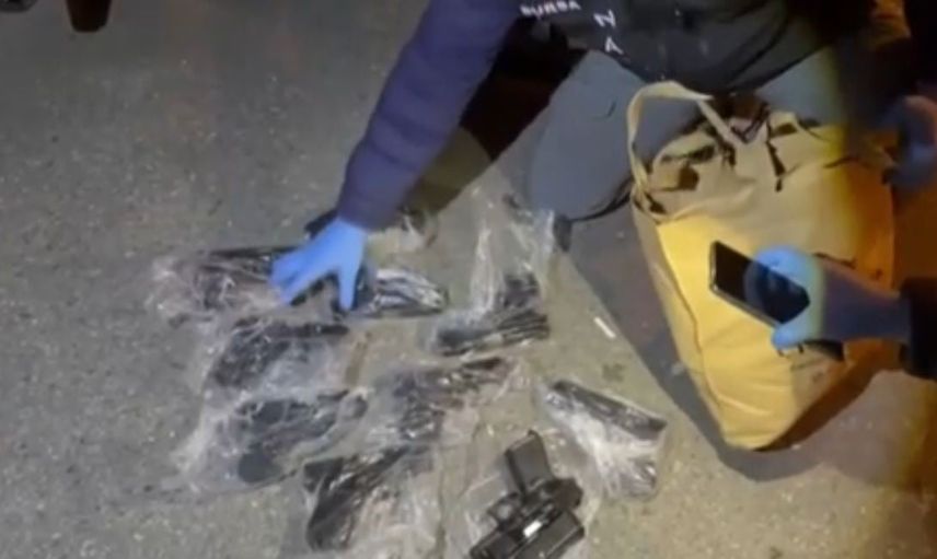 Şüphelilerin araçlarında yapılan aramada 55 gram kokain ile 10 adet ruhsatsız tabanca ele geçirildi.