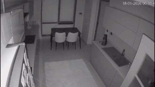 Bursa'nın Nilüfer ilçesi Görükle Balkan Mahallesi'nde, yeni tamamlanan bir binada saat 06.30'da mutfak tavanı çöktü; olay güvenlik kamerasına yansıdı.