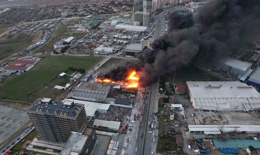 İtfaiye müdahalesi sürüyor, alevler dronla havadan kaydedildi