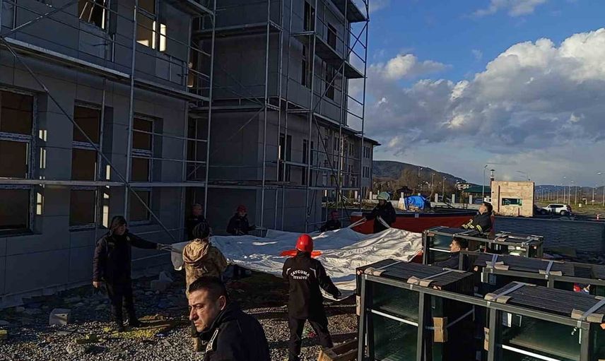 İtfaiye ekipleri, kişinin atlama ihtimaline karşı zemine hava yastığı açarak güvenlik önlemi aldı. Yaklaşık 1 saat süren ikna çalışmalarına işçinin mesai arkadaşları da destek verdi. Uzun uğraşlar sonucu ikna edilen N.U., bulunduğu yerden güvenli bir şekilde indirildi.