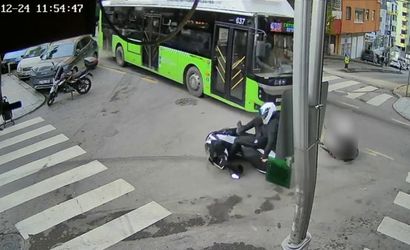 Kocaeli’nin Çayırova ilçesinde meydana gelen kaza, güvenlik kameralarına yansıdı. 24 Aralık tarihinde Yeni Mahalle Fatih Caddesi üzerindeki dört yol ağzında, sürücülerinin isimleri ve plakaları öğrenilemeyen belediye otobüsü ile motokurye çarpıştı.