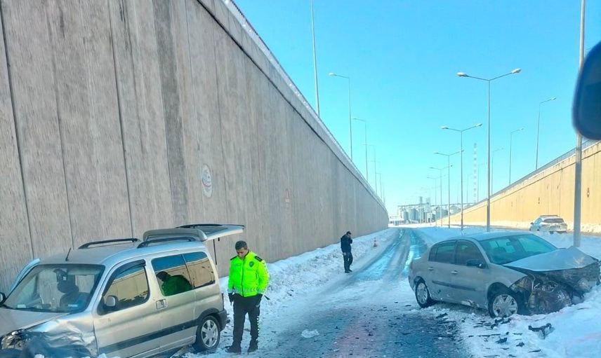 Diyarbakır'ın Çınar ilçesinde meydana gelen kazada, sürücülerin direksiyon hakimiyetini kaybettiği bir otomobil ile hafif ticari araç çarpıştı.