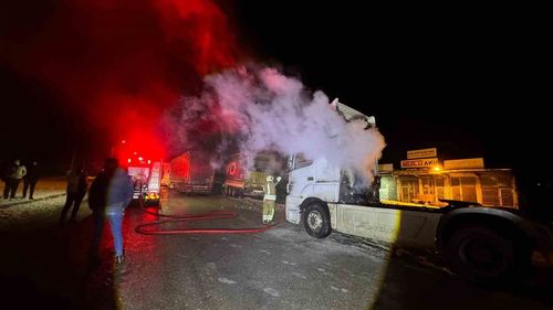 Cizre-Nusaybin Karayolu Katran mevkiinde seyir halindeki 33 DFD 11 plakalı TIR, sürücü Emin Cengiz'in ihbarı sonrası itfaiye tarafından söndürülen yangında büyük maddi hasar gördü.