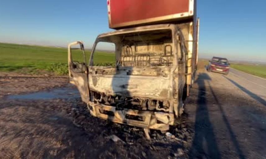 İtfaiye ekiplerinin müdahalesiyle yangın söndürüldü; yangın sonrası kamyonetin kabini demir yığınına döndü.