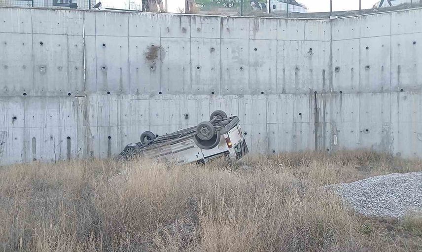 Çorum’da hafif ticari araç 8 metrelik duvardan saha içine düştü: 1 ağır yaralı