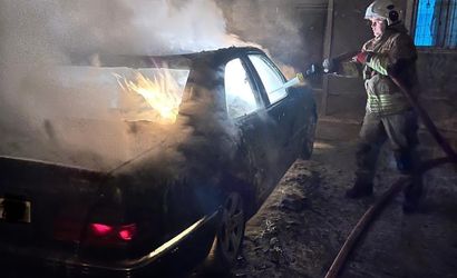 Hatay'ın Defne ilçesi Subaşı Mahallesi'nde park halinde bulunan Mercedes Benz marka otomobilin motor kısmı alevlere teslim oldu.