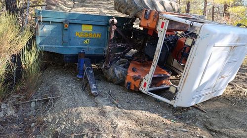 Denizli Çameli Emecik'te devrilen traktörün altında kalan A.H. (53), itfaiye ekipleri tarafından kurtarıldı ve hastaneye sevk edildi.