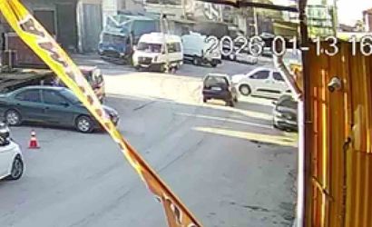 Kaza anı, bir işyerinin güvenlik kameralarına anbean yansıdı. Görüntülerde, otomobil seyir halindeyken aniden yola çıkan hafif ticari araca çarptığı ve çarpışmanın ardından hafif ticari aracın yan yattığı görülüyor.