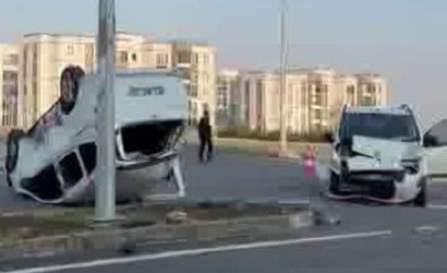 Diyarbakır'da iki hafif ticari aracın çarpışması sonucu meydana gelen kazada, araçlardan biri ters döndü. Olayda 2 kişi yaralandı.