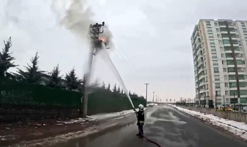 Diyarbakır'ın Kayapınar ilçesinde, Mezopotamya Bulvarı üzerinde bulunan bir elektrik direğinin üstündeki trafoda henüz belirlenemeyen nedenle yangın çıktı.