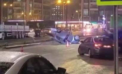 Diyarbakır'ın merkez Kayapınar ilçesinde meydana gelen kazada, sürücüsünün direksiyon hakimiyetini kaybettiği otomobil refüje çarpıp takla atarak ters döndü.