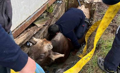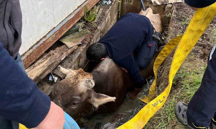 Düzce'nin Cumayeri ilçesine bağlı Yaka Mahallesi'nde otlayan ineklerden biri kuyuya düştü. İneği kendi imkanlarıyla çıkaramayan vatandaşlar durumu belediye ekiplerine bildirdi.
