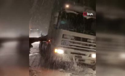 D-655 karayolu Kabalak mevkiinde yolda kalan araçlara müdahale için bölgeye giden bir çekici kara saplandı. Kardan aracın çıkartılması için bölgedeki vatandaşlar müdahalede bulundu; o anlar cep telefonu kamerasına yansıdı.