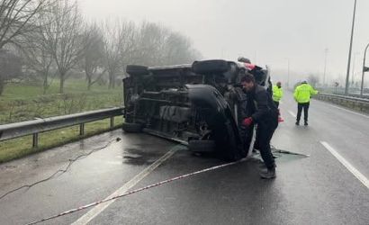Düzce'de, Kuzey Çevre Yolu AFAD Kavşağı geçildikten sonra sürücünün direksiyon hakimiyetini kaybetmesi sonucu bir ambulans kontrolden çıkarak yolun sağ şeridinde devrildi.