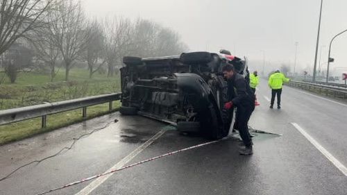 Düzce’de Kuzey Çevre Yolu AFAD Kavşağı'nda sürücünün kontrolünü kaybetmesi sonucu devrilen ambulansta 2 kişi yaralandı; yaralılar Düzce Üniversitesi Hastanesi'ne kaldırıldı.