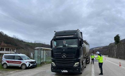 Düzce Trafik Jandarması ekiplerince yürütülen trafik denetim faaliyetleri kapsamında il genelinde geniş çaplı kontroller gerçekleştirildi.
