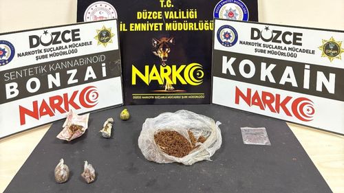 Düzce’de düzenlenen uyuşturucu operasyonunda E.E., E.R.A. ve S.A. gözaltına alındı; 42 gram sentetik kannabinoid ve bir miktar kokain ele geçirildi.