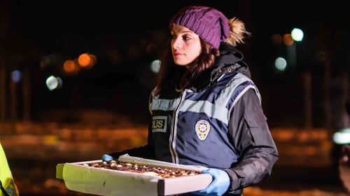 Düzce İl Emniyet Müdürlüğü yeni yıl denetimlerinde alkolsüz sürücülere çikolata dağıtarak teşekkür etti.